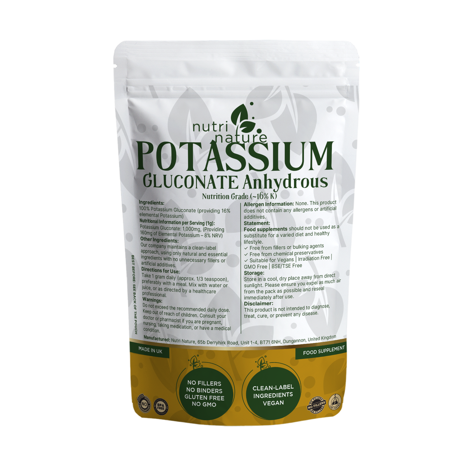 Potassium Gluconate 250g – Natural Vegan Supplement