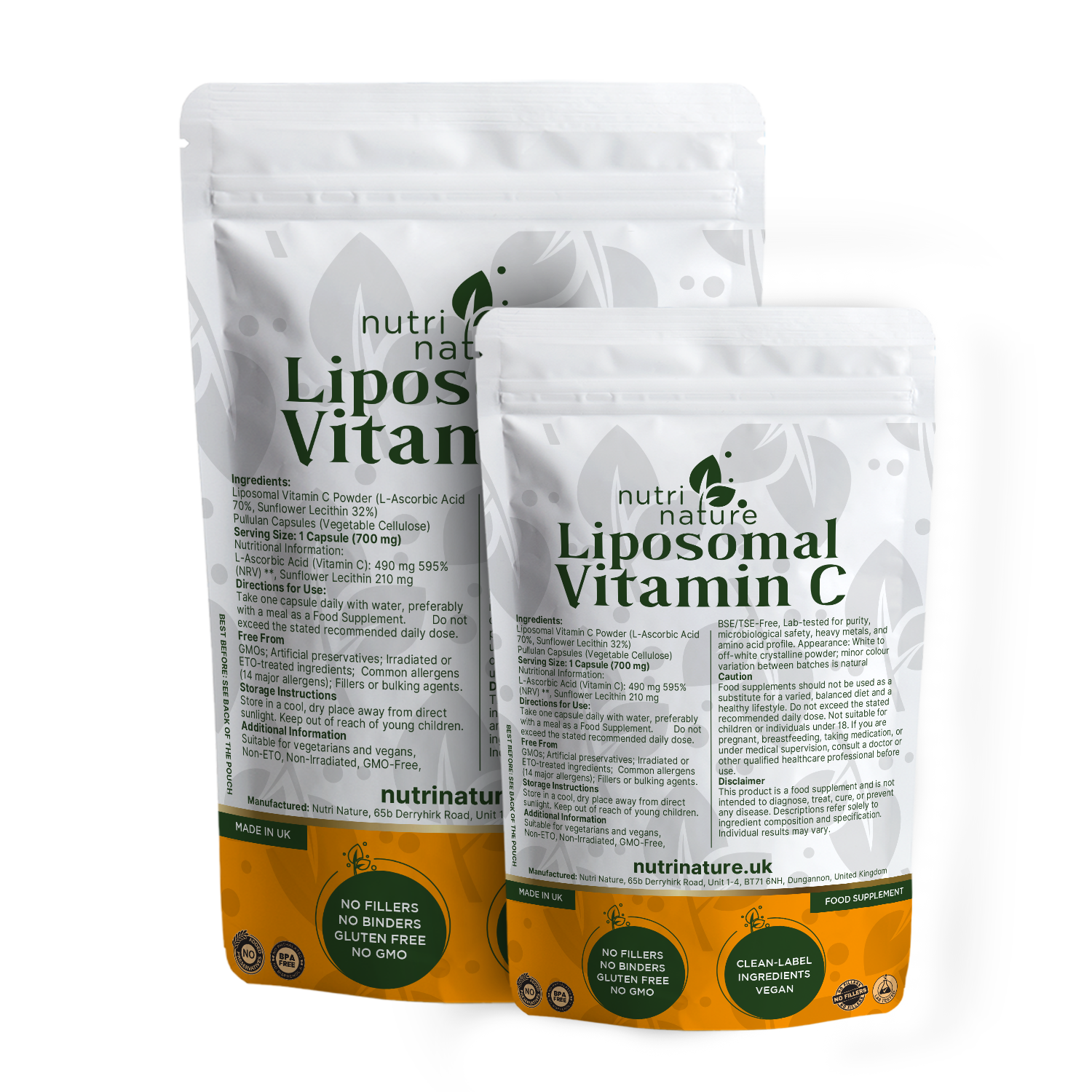 Liposomal Vitamin C Powder ,(L- Ascorbic Acid 70%, Sunflower Lecithin 32%), Pullulan Capsules